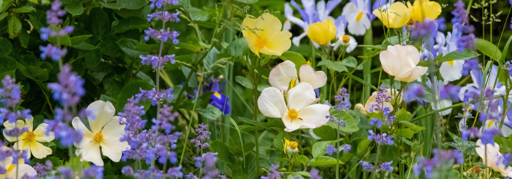 Roses bloom generously, filling the air with scent. Deadheading keeps the display going, while deep watering supports the plants through warm, dry days. Gathering stems for the house brings part of the garden indoors.