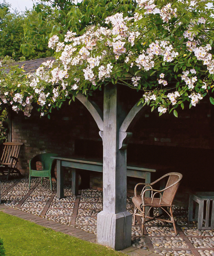 Pergolas and arches require larger ramblers and climbers than obelisks, which generally only need roses of between 6ft to 8ft. Repeat flowering varieties are an ideal choice for blooms throughout the summer, however once-flowering ramblers can also be used, perhaps planted alongside a late-flowering clematis to prolong the blooming season.