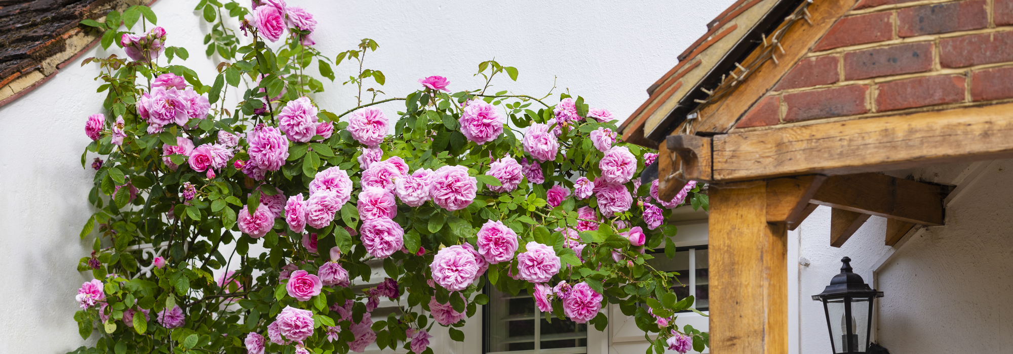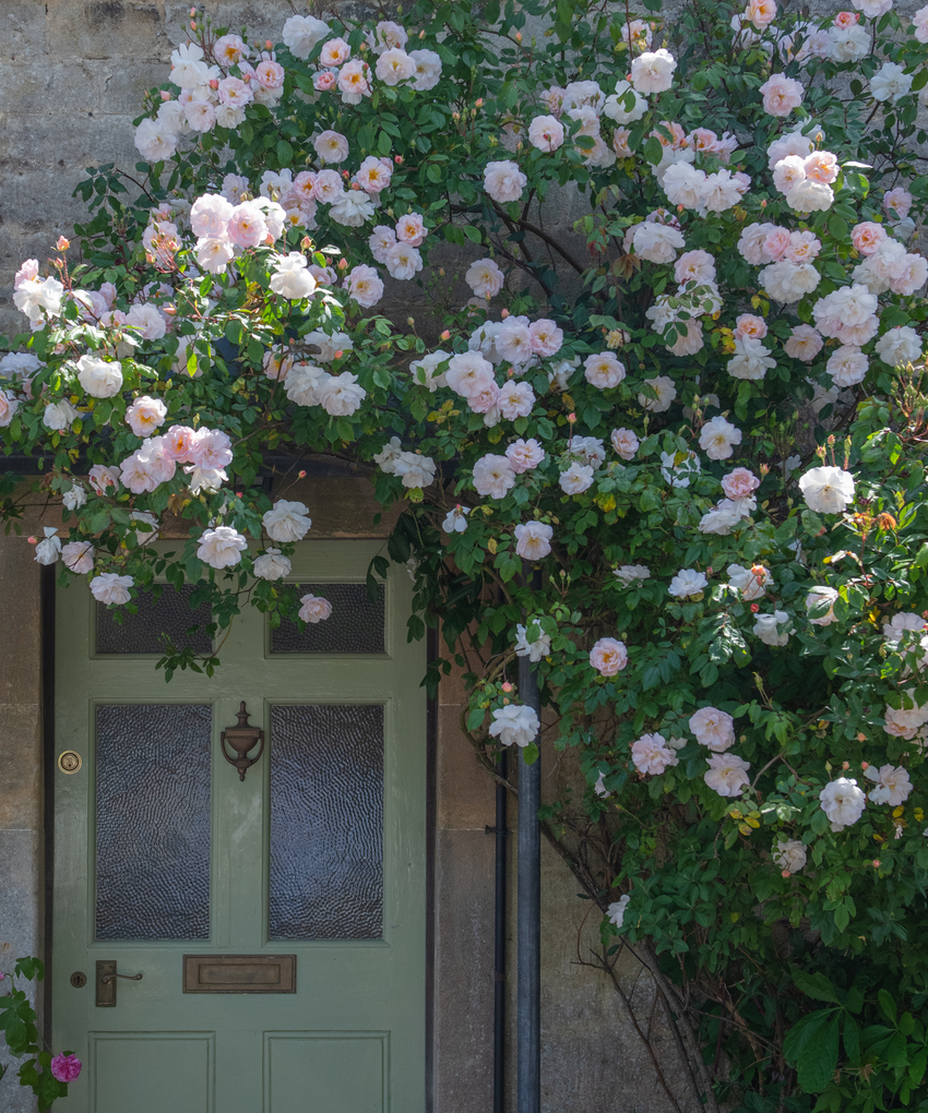 Planting a fragrant, colourful rose next to a doorway makes for an enticing entrance. Plant pots either side of the doorstep for a formal look or why not train a climber up the wall for real impact.