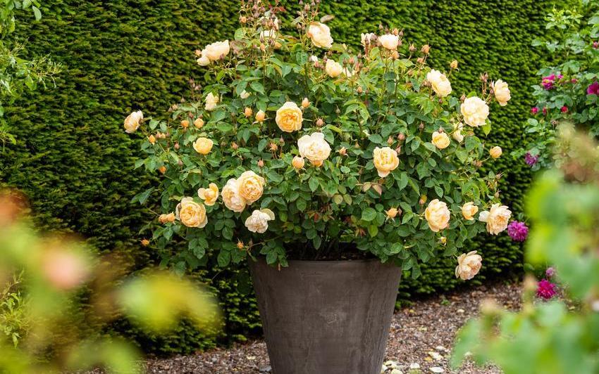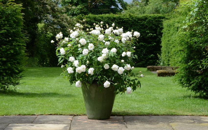 For shrub roses, a container at least 45cm (roughly 60 litres) deep and wide provides the space needed for strong root development and healthy growth. In return, the plant establishes well and flowers with surprising abundance.