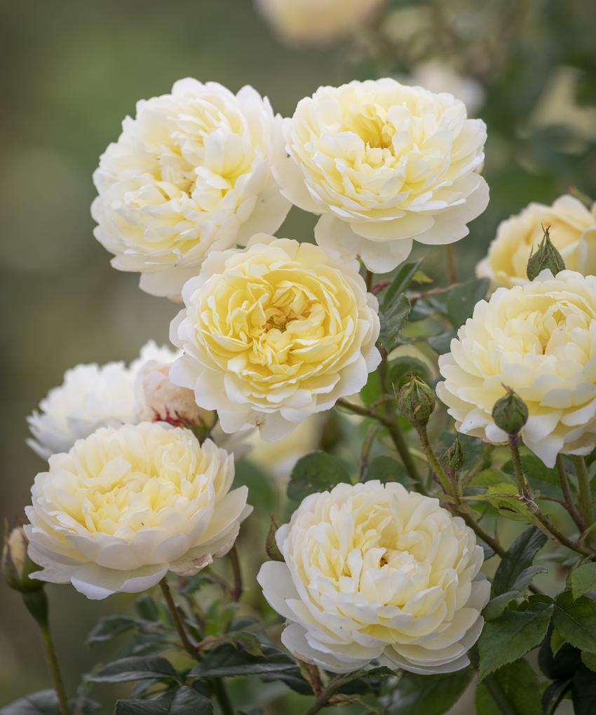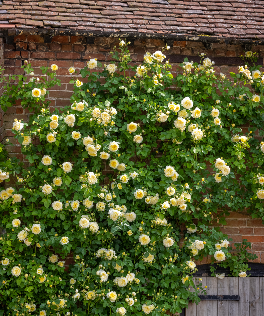 A variety with particularly beautiful blooms, The Pilgrim®'s buds open to reveal many petalled cups, which gradually form large, flat rosettes. The colour is a very attractive shade of soft yellow, the petals paling prettily towards the edges.