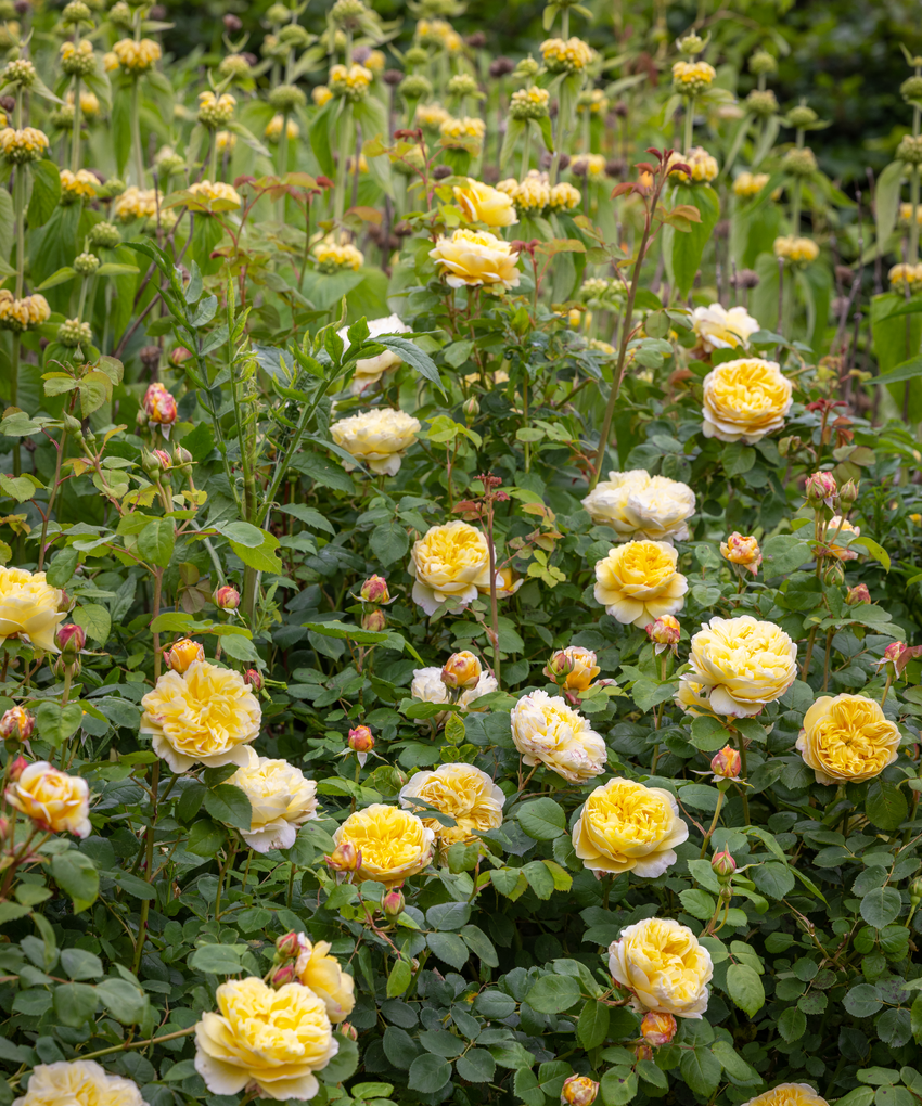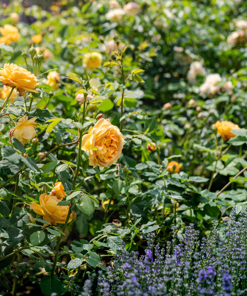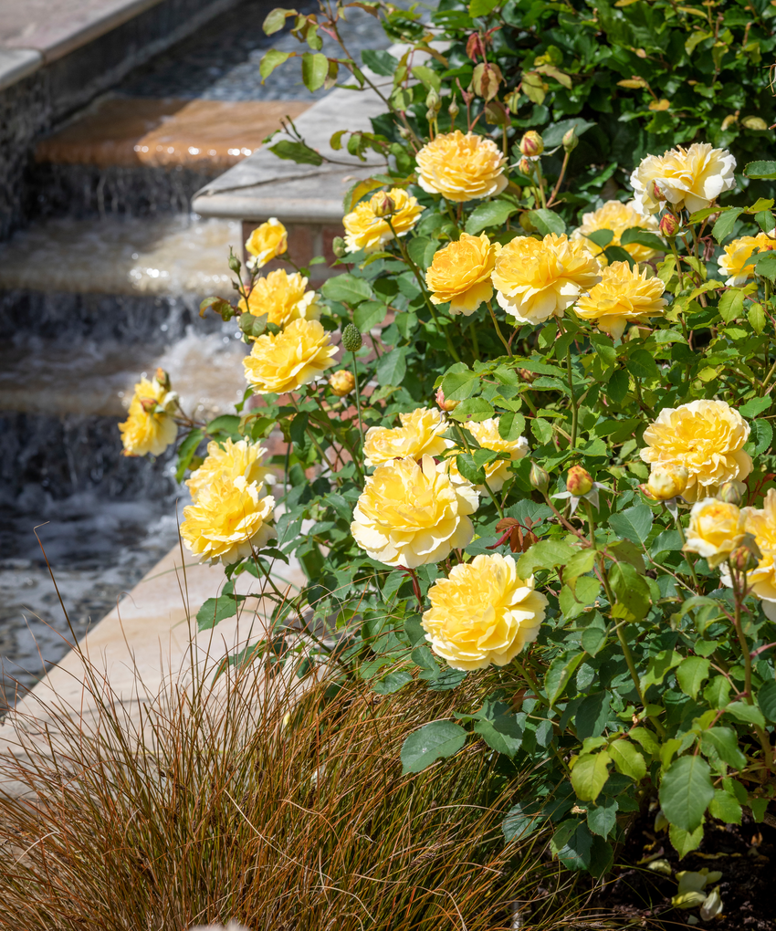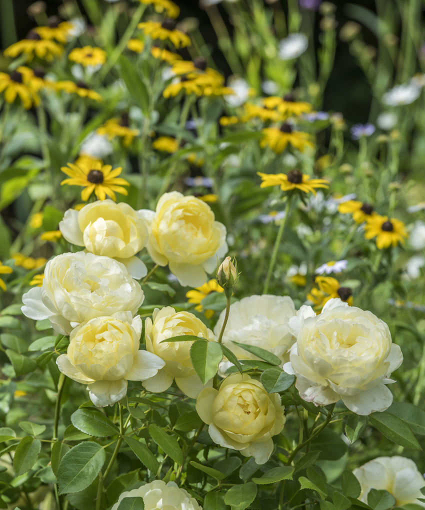 Yellow roses are uplifting and illuminating. Balance with grey or silver-toned foliage for a rejuvenating combination or go bright and combine with another vibrant tone. Plant positively with a yellow rose like Vanessa Bell® combined with Rudbeckia fulgida, Artemisia, lavender or curry plant. Select a golden yellow like Golden Celebration® or Molineux® for a warmer, richer feel.