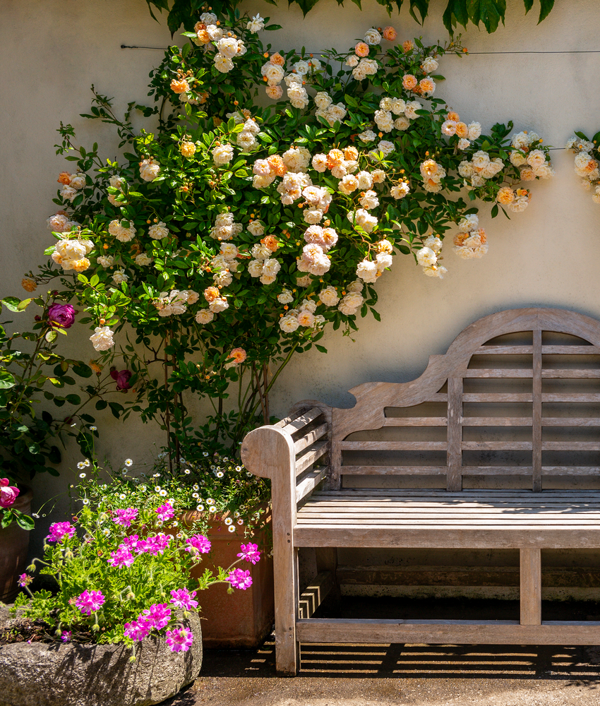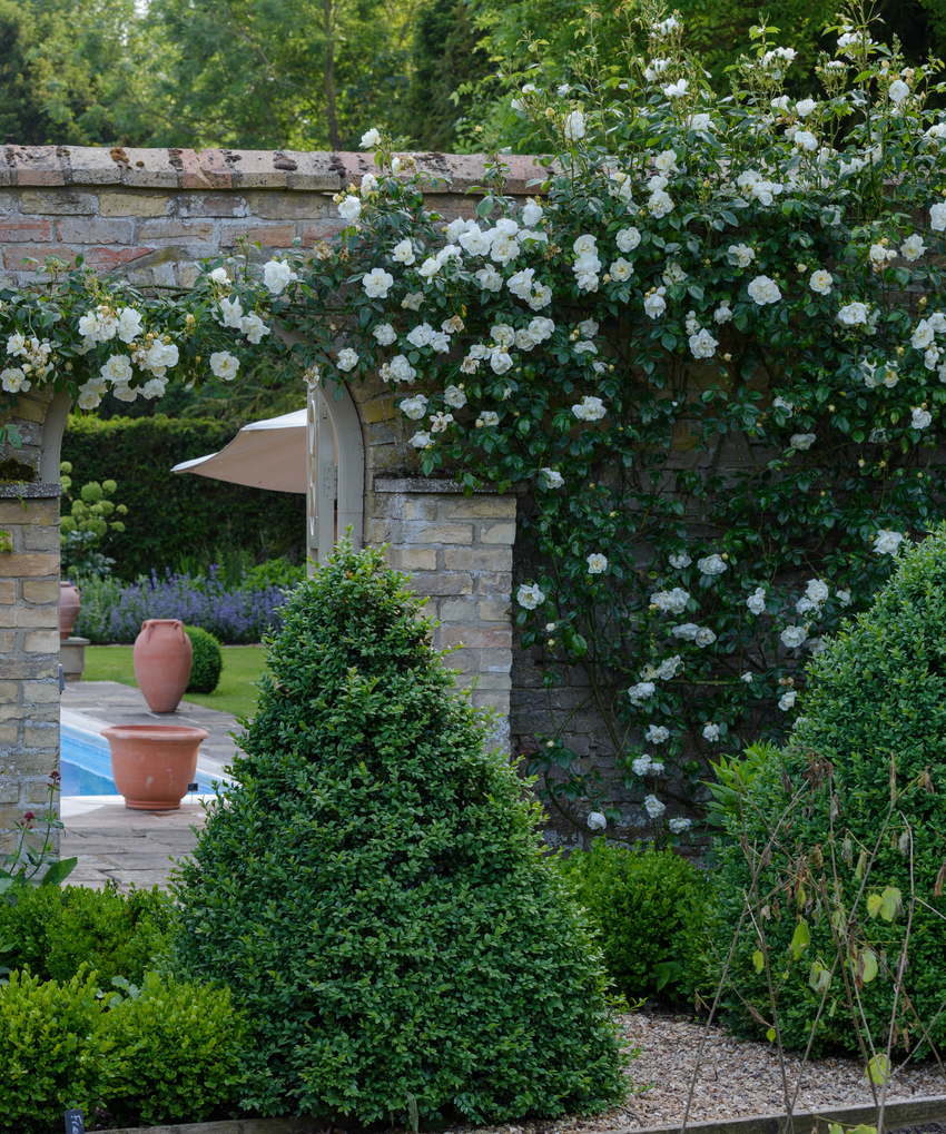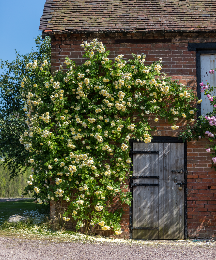 Using climbing and rambling roses to cover walls