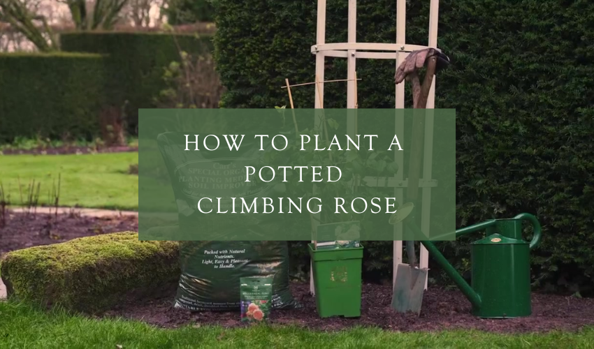 Watch our video or read our step-by-step guide on planting a potted climbing rose. -