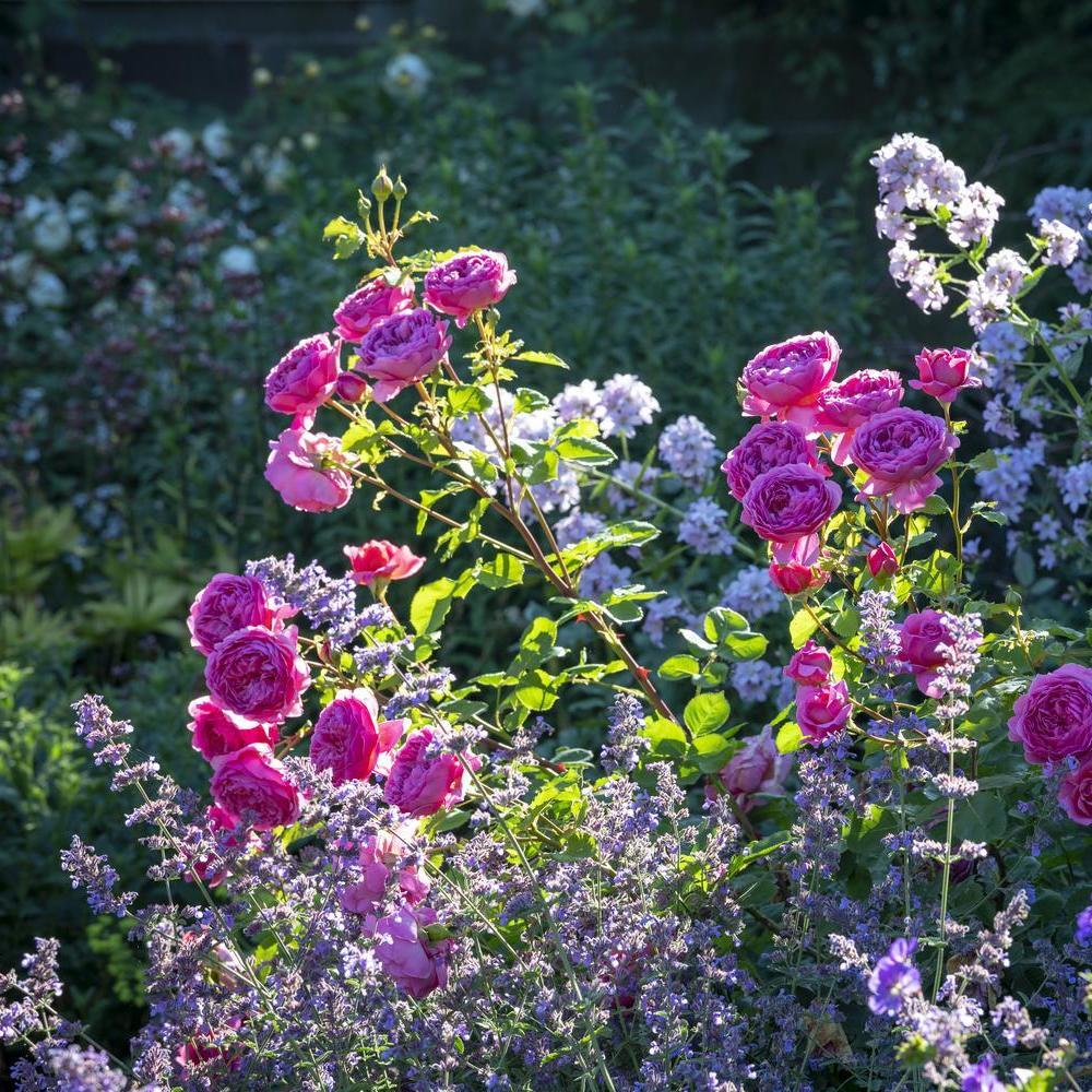 This is ideal for cottage-style gardens, where you can blend English roses with perennials for a playful, joyful effect.