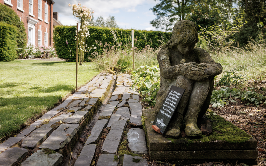 Around the garden is the sculptural artwork of Mrs Pat Austin, wife of David C. H. Austin and mother of now Chairman David J. C. Austin. Mrs Austin’s work can also be found on the doctor’s surgery in Albrighton; a captivating mural depicting the evolution of life, and at nearby Tong Church, enhancing the local area’s artistic charm.
