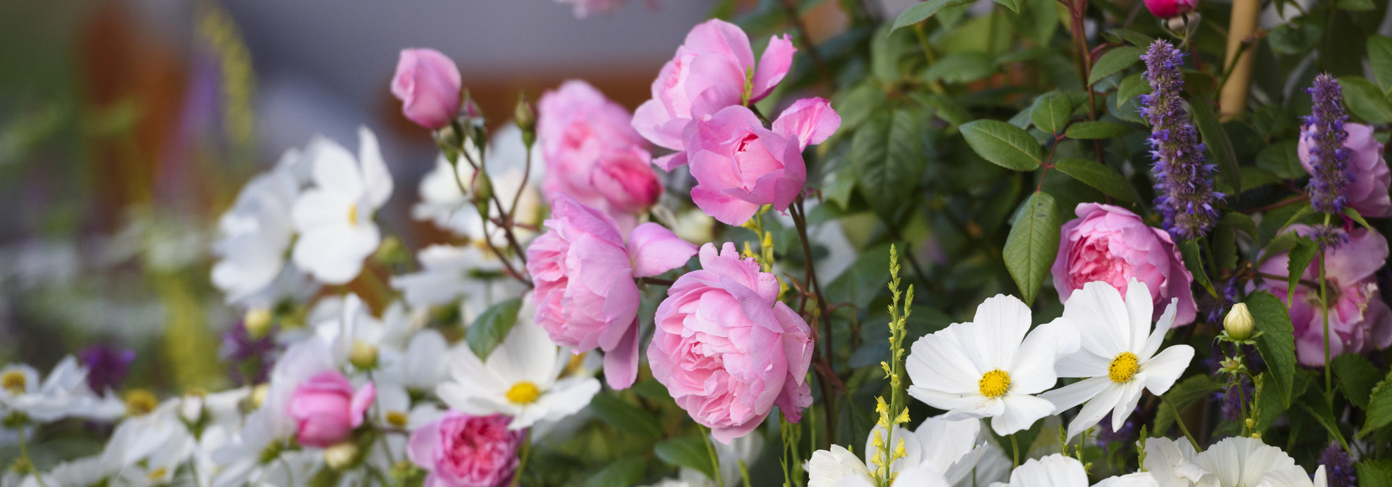 Roses are invaluable in a mixed border; I love using them in every garden I create. Roses bring height, form, structure, and, most importantly,they bring romance and magic. The sheer beauty and presence of their blooms is so striking that their charm stays in the memory long after their blooms have faded and gone. This is why they work so well within a mixed planting –the different shapes, textures and colours of a carefully selected range of companion plants serve as a complement to the rose’s glory, creating different atmospheres and effects depending on the plants you choose. In these recipes for mixed plantings, the colours and form of the rose are enhanced by a range of companions which have been brought together to suit a range of different purposes.