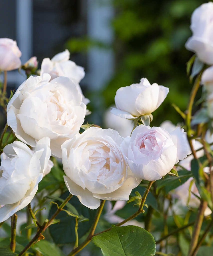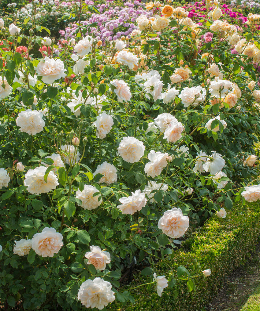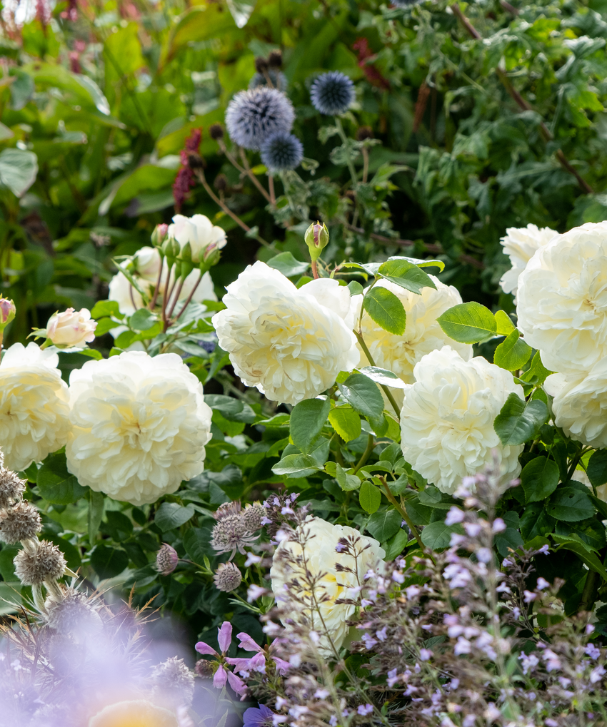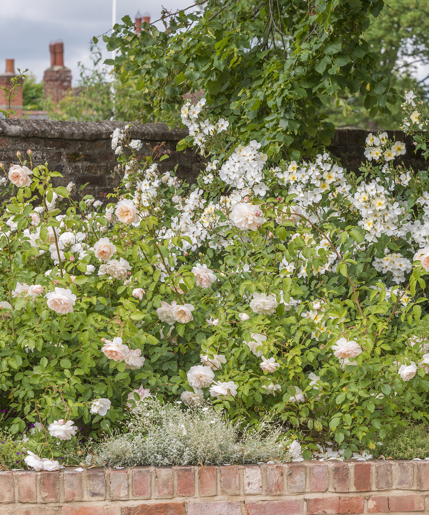 For a softer, more rustic, informal approach to white, plant with a bit more freedom, selecting varieties which are slightly off-white or even cream. The effect is still fresh and classic but with the warmth of a country farmhouse kitchen. Spill the blooms over the side of an old pot, along the cusp of a wall or over an obelisk in a walled garden for an elegant, effortless effect.
