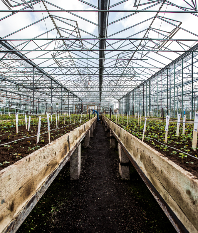 By November the hips will have ripened sufficiently for us to extract the child seeds. We cut the hips, remove the seeds and store them in refrigerators over winter. In January we will sow around 350,000 individual seeds on benches in our greenhouses. From then until spring these seeds will germinate into small plants with a smattering of blooms.